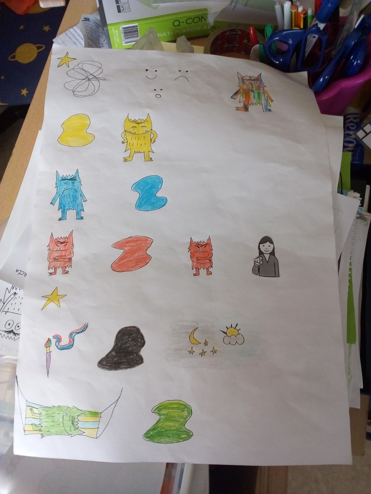 Mientras tanto, hemos hecho nuestro propio cuento en clase y pintado nuestro monstruo naranja...SURPRISE!!